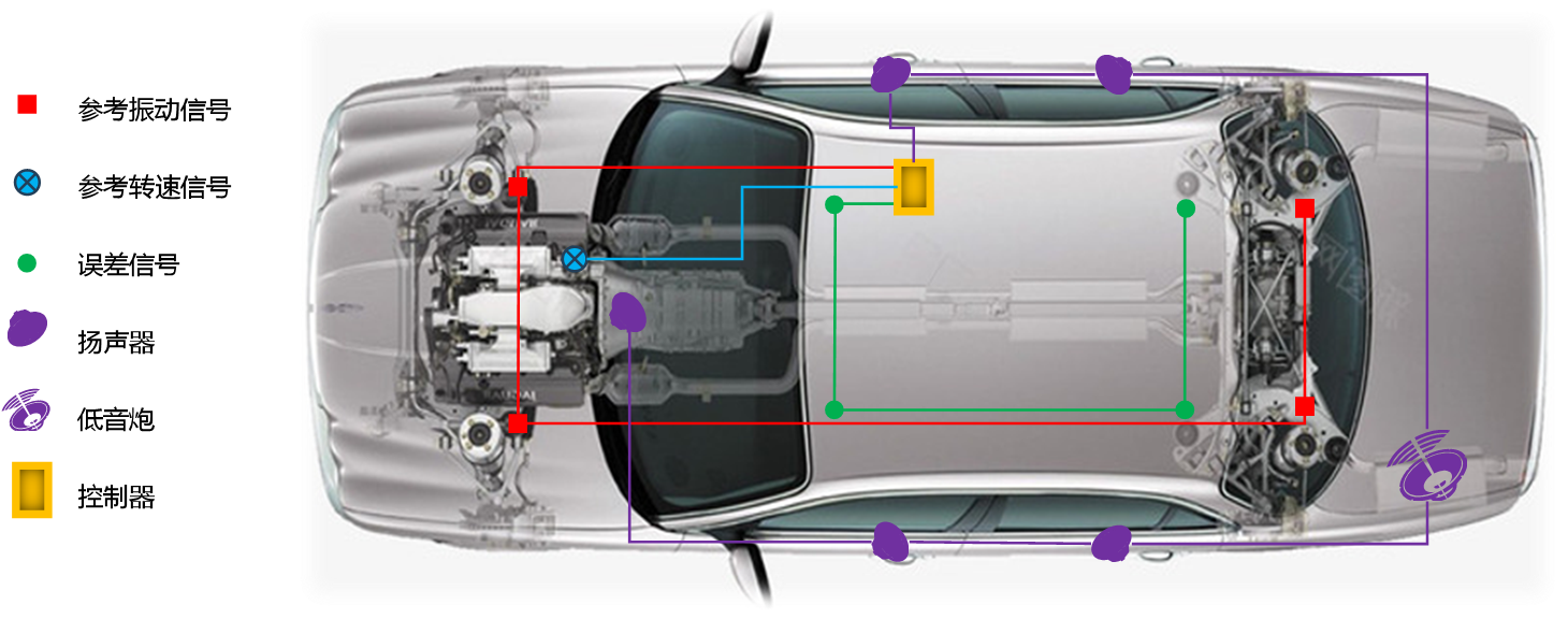 随着目前新能源汽车的普及和智能座舱技术的不断发展,乘员对汽车舱内声学舒适性的需求也日益增长,如何研究开发出高效、低成本、集成化和鲁棒性高的车内主动噪声控制系统,已成为汽车智能座舱研究领域亟待突破的技术瓶颈。目前车内主动噪声控制技术主要针对于发动机噪声和道路噪声,其中发动机噪声主动控制(Engine Noise Cancellation, EOC)主要针对的是阶次噪声,由发动机系统中的旋转机械及往复运动的部件产生,由于控制系统相对简易,ENC系统已经在不少车系实现了商业化应用,而道路噪声主动控制(Road Noise Cancellation, RNC)主要针对的是由道路激励通过车身传递到车内产生的宽频随机噪声,其对控制系统的因果性、相关性以及控制策略等提出了更高的要求。目前,商业化的RNC跟EOC系统是相对独立运行的,而为了实现车内噪声最大程度的衰减,塞特仑科技有限公司发布全新一代混合控制系统对两种噪声进行同步控制。